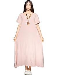 Anysize Side Pockets Linen Cotton Soft Loose Dress Spring Summer Plus Size Clothing F131A