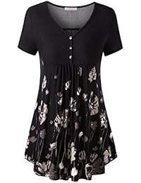 WAJAT Women's V Neck Front Pleated Flared Comfy Loose Tunic Top