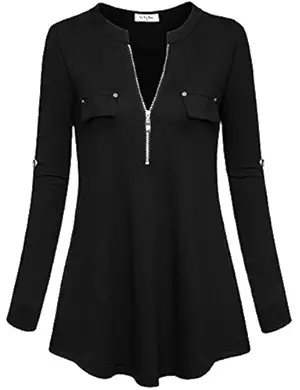 YaYa Bay Women's Notch-V Neck Long Sleeve Roll-up Sleeve Zip up Casual Shirt Blouse Tops